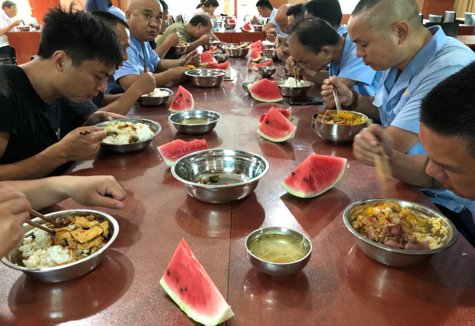 在食堂為一線員工準備了西瓜和綠豆湯等食品